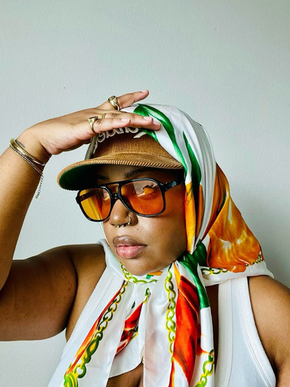 Années 90 : Inspire-toi du durag, pose le carré plié en diagonale sur la tête, croise les extrémités vers l'arrière puis noue-les sur le haut du crâne ou légèrement sur le côte pour plus de swag.